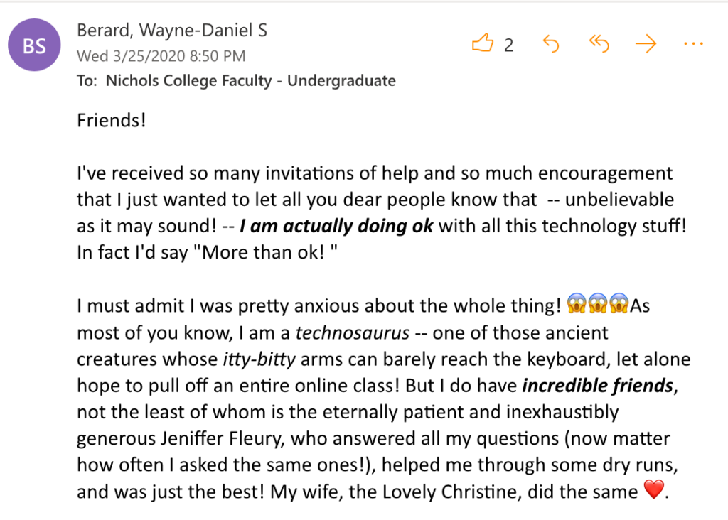 I also attended other meetings where faculty were asked to attend. Examples of these meetings include President Engelkemeyer’s meetings on the State of the College and the College’s Strategic Planning meetings.